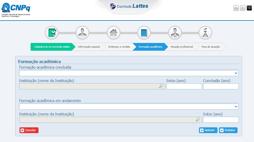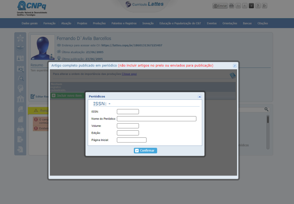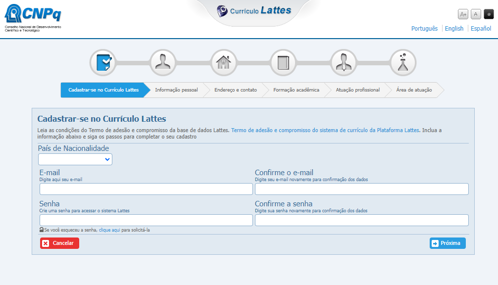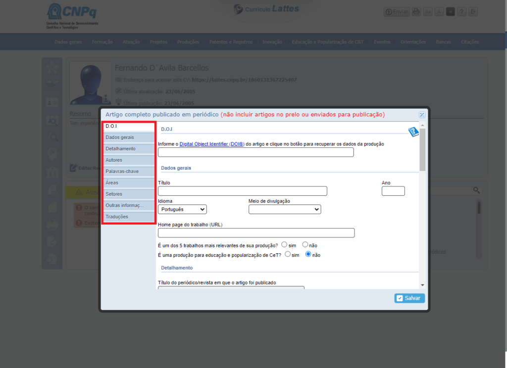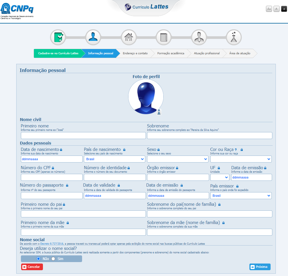 Portanto, dedique um momento para revisar e garantir que todas as informações pessoais estejam completas e corretas antes de prosseguir para as próximas etapas de preenchimento do seu Currículo Lattes.