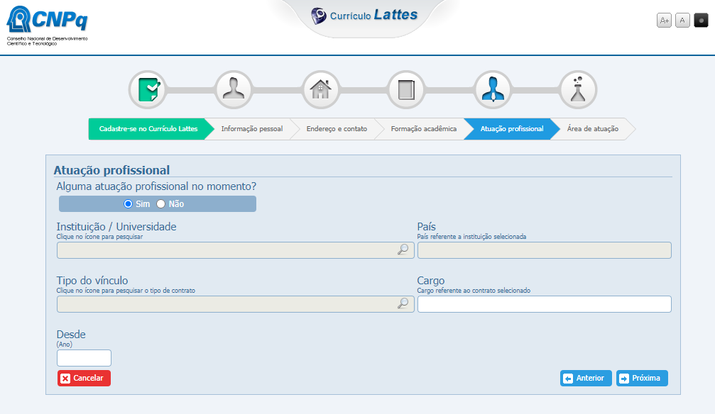 A seção de Atuação Profissional no Currículo Lattes é o espaço dedicado a destacar suas experiências de trabalho no meio acadêmico e científico. Aqui, você deve listar suas atividades como professor, pesquisador, colaborador em projetos e demais cargos relacionados à sua área de atuação.